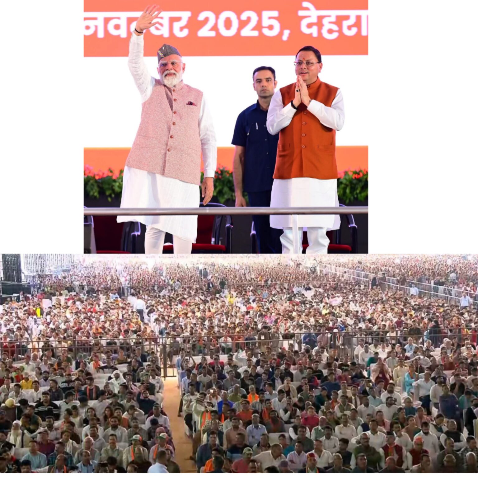 उत्तराखंड की स्थापना के 25 वर्ष पूरे होने पर रविवार को देहरादून के प्रतिष्ठित वन अनुसंधान संस्थान (एफआरआई) में ऐसा नज़ारा देखने को मिला, जो अब तक के सभी आयोजनों से अलग और अभूतपूर्व था। प्रधानमंत्री नरेंद्र मोदी के आगमन को देखने-सुनने के लिए जनसैलाब उमड़ पड़ा। अनुमान के अनुसार, डेढ़ लाख से अधिक लोग कार्यक्रम स्थल पर मौजूद थे। यह भीड़ उत्तराखंड के इतिहास में अब तक की सबसे बड़ी बताई जा रही है।